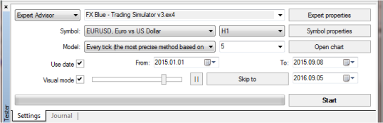 • Choose "FX Blue Trading Simulator v3" from the "Expert Advisor" list.